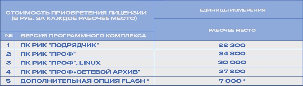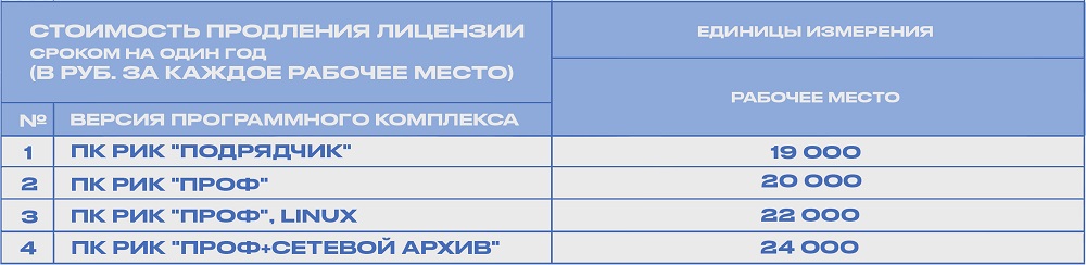 Стоимость приобретения лицензии на ПК РИК с 01.01.2025 года: